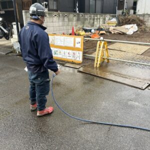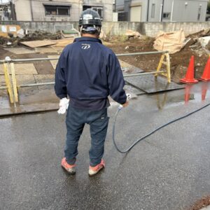 どうしても道路に土や泥、水跡が残ってしまいます。