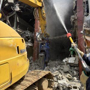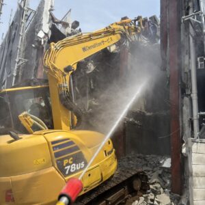 だからこそ、Demolitionサービスでは重機オペレーターと連携して、タイミングを合わせながら丁寧に散水しています。
