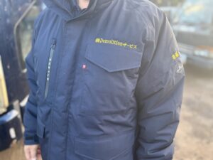 胸元には社名ロゴを刺繍し、スタッフ全員が統一感ある装いで作業に取り組めるようになりました。