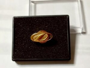 なんと、杉本会長から**新しく制作された「社章」**が、社員一人ひとりに手渡されました。